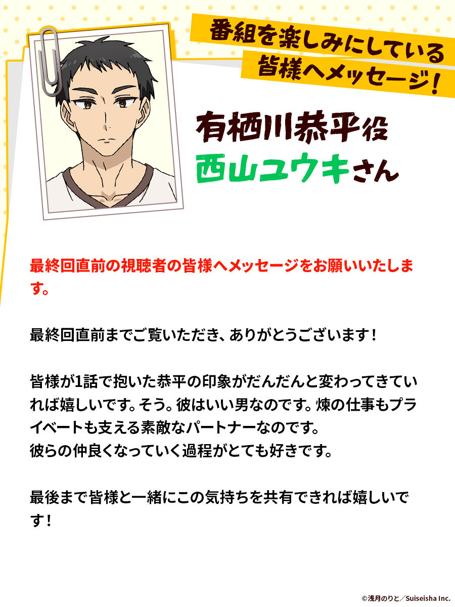 【最終回へ向けてメッセージ】有栖川恭平役 西山ユウキ様