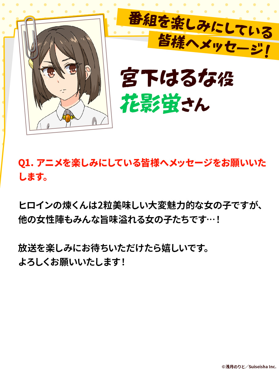 Q.アニメを楽しみにしている皆様へメッセージをお願いいたします。