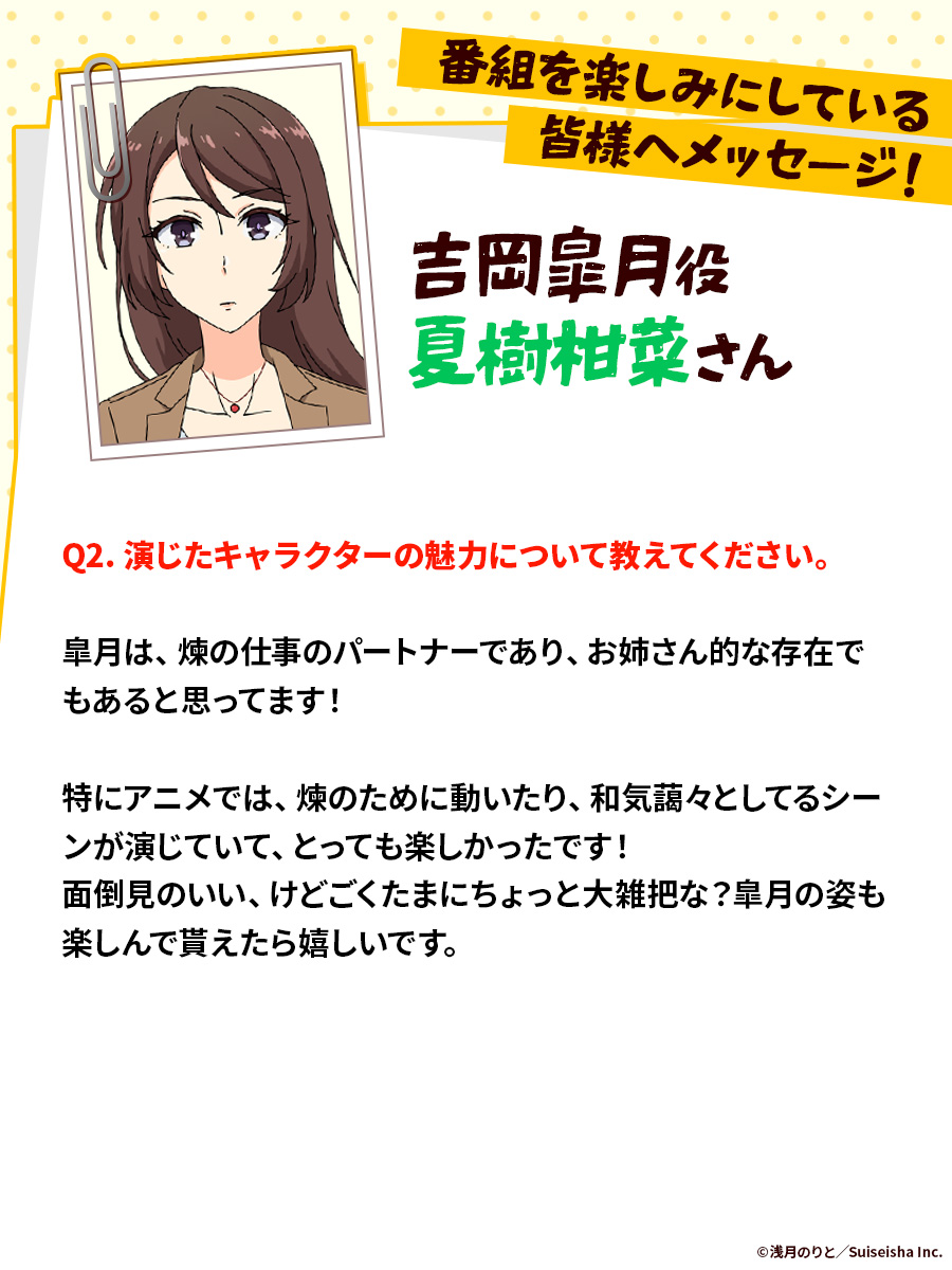 【メッセージ】吉岡皐月役 夏樹柑菜様②